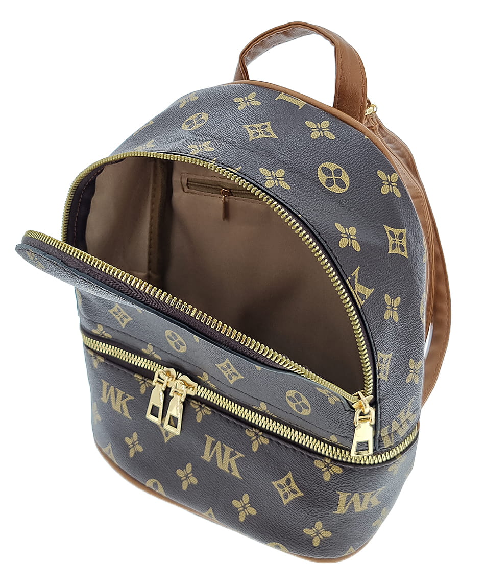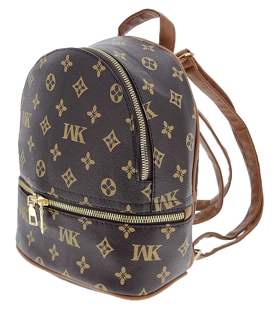Brązowy mały plecak damski z napisami Turbo Bags